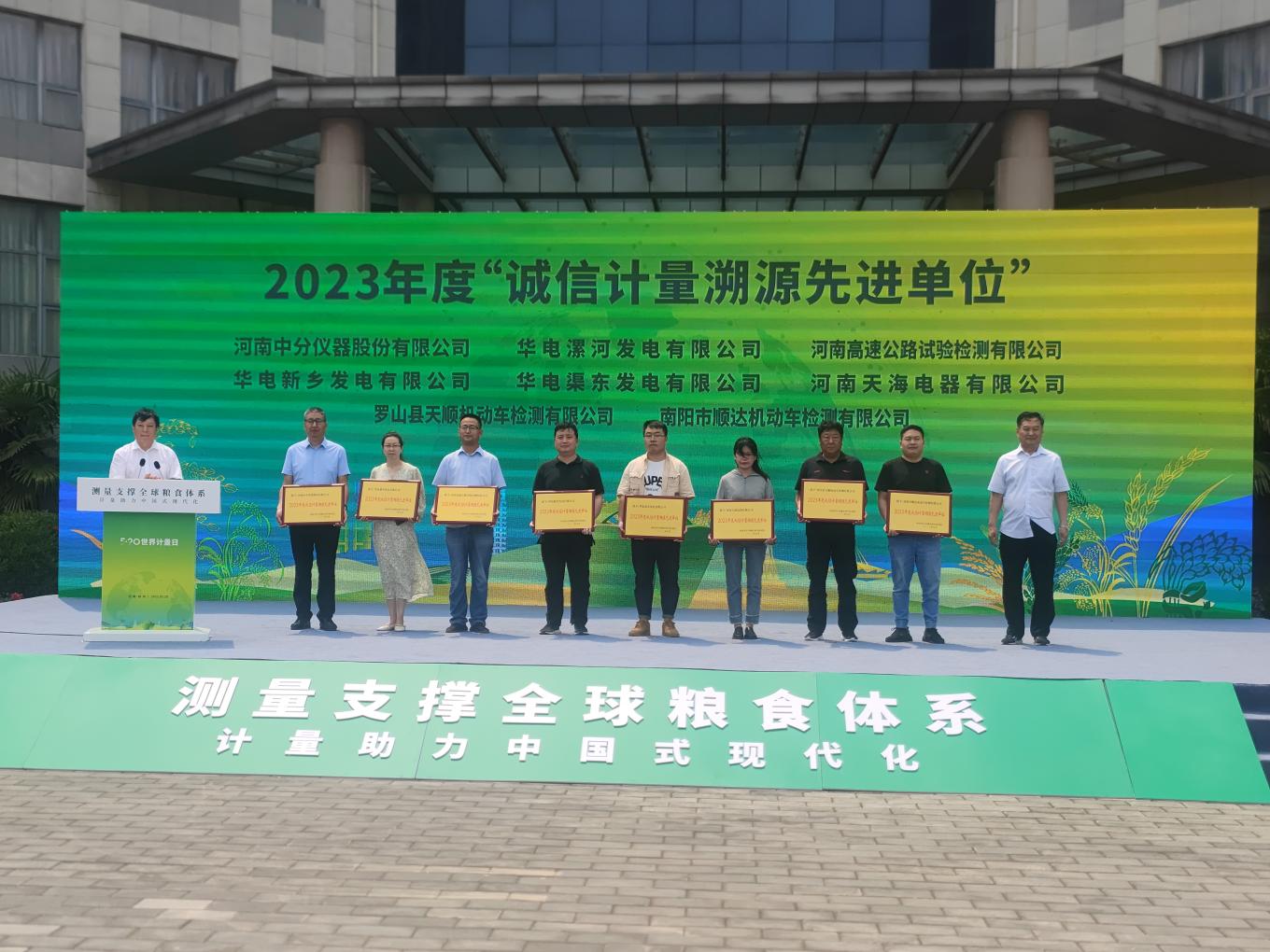 2023年5月20日是第24個“世界計量日”,由河南省計量測試科學(xué)研究院組織的“2023年度誠信計量溯源先進(jìn)單位”頒獎活動在計量測試科學(xué)研究院平原新區(qū)實驗基地隆重舉行。我公司獲評“2023年度河南省計量溯源先進(jìn)單位”榮譽(yù)稱號。
